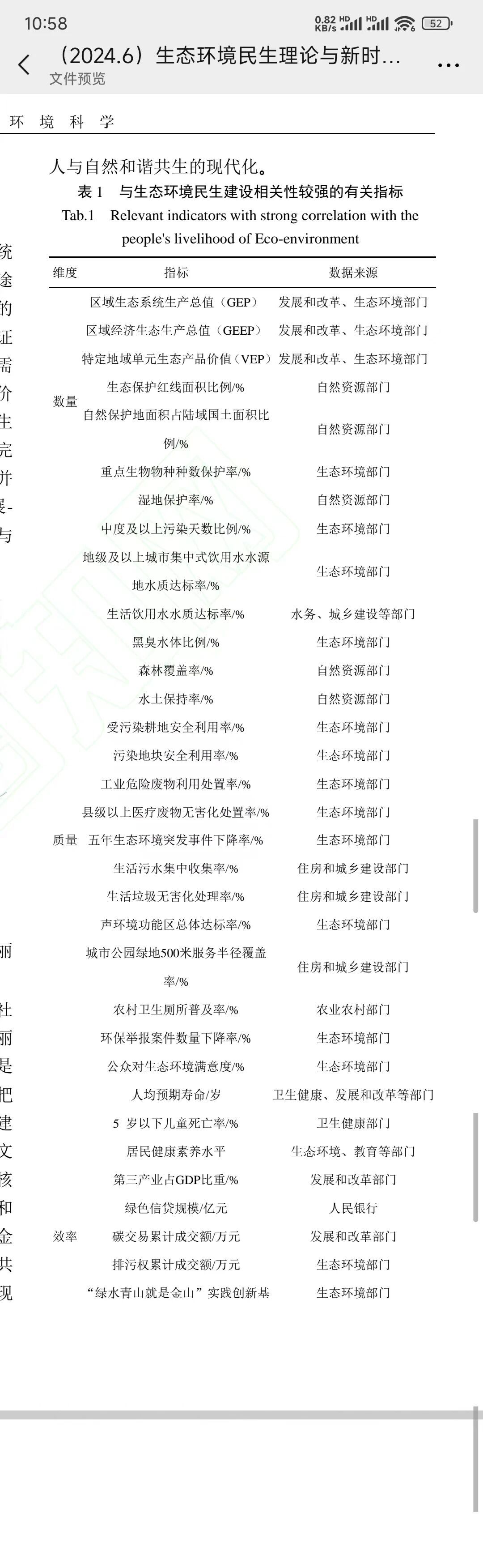 Tab.1 Relevant indicators with strong correlation with the people's livelihood of Eco-environment